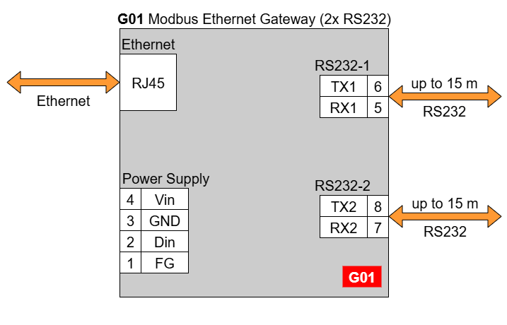 G01 - Ethernet Modbus Gateway 2x RS232