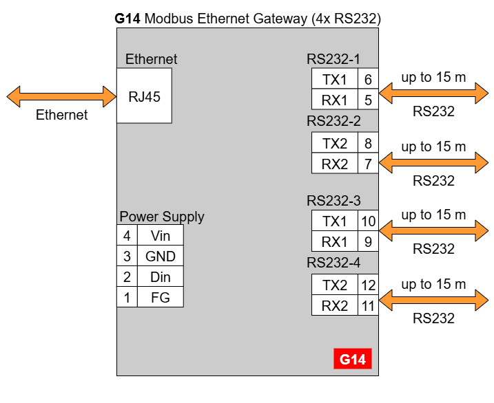 G14 - Ethernet Modbus Gateway 4x RS232