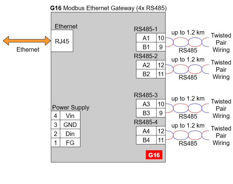 G16 - Ethernet Modbus Gateway 4x RS485