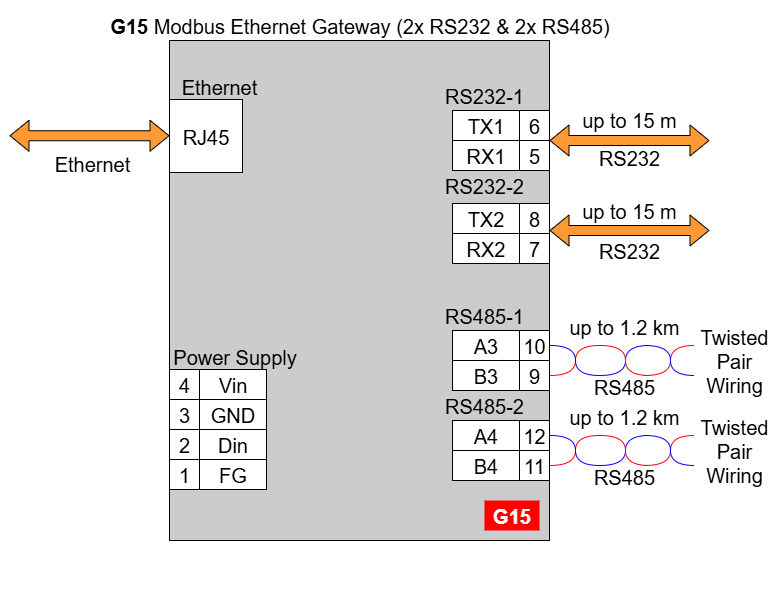 G15 - Ethernet Modbus Gateway 2x RS232 & 2x RS485