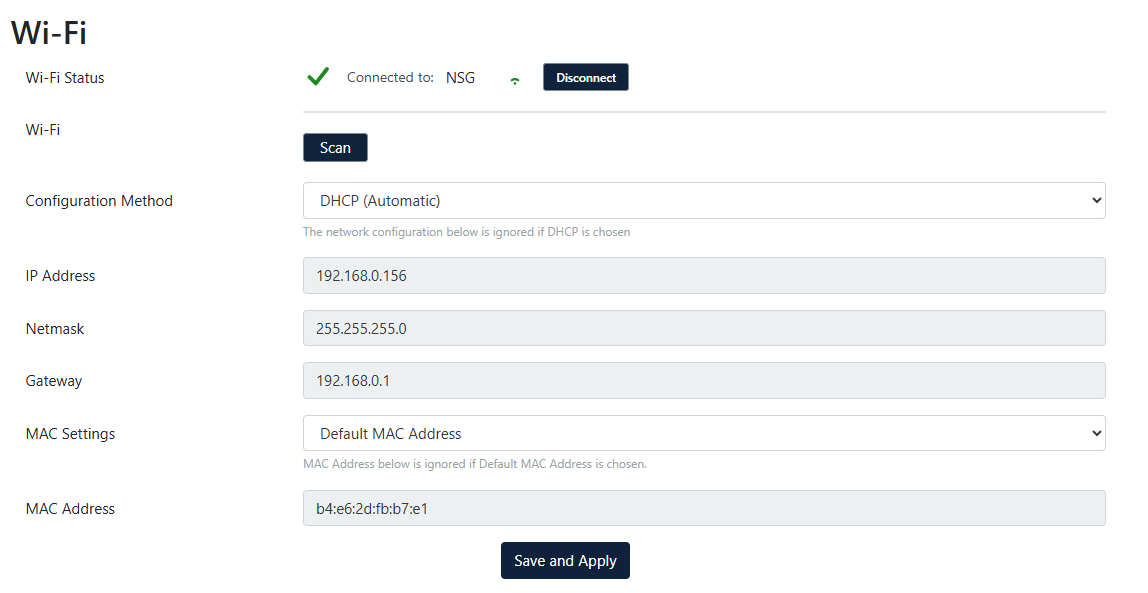 The configuration is available only if devices are connected to the same Local Area Network as the computer used for it.