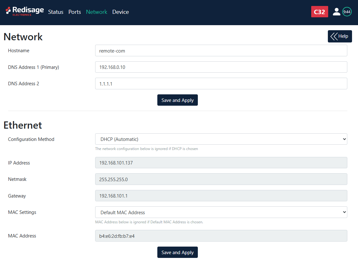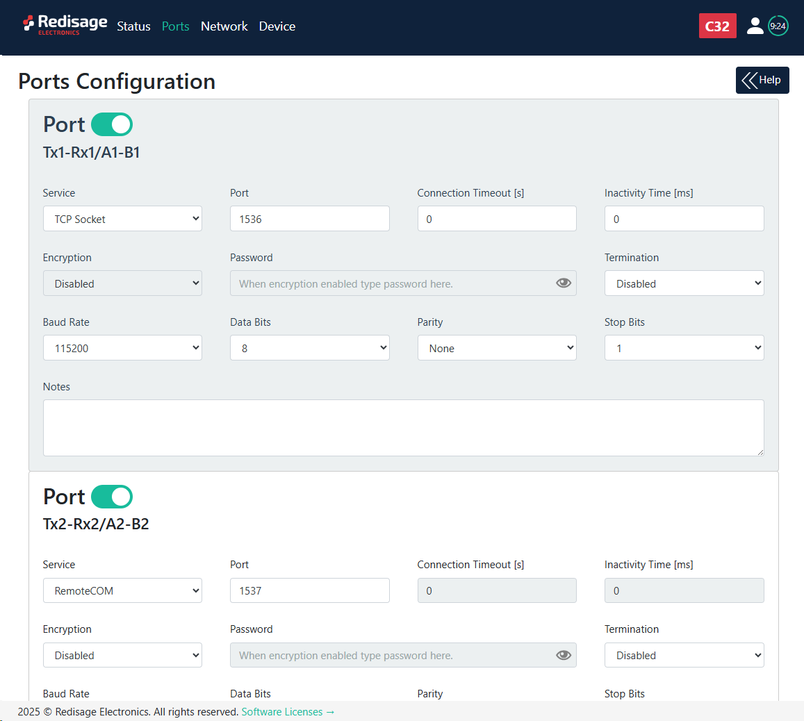The RemoteCOM option lets to attach the port to a computer running the Redisage Configurator as if it would be physically present in the computer. |