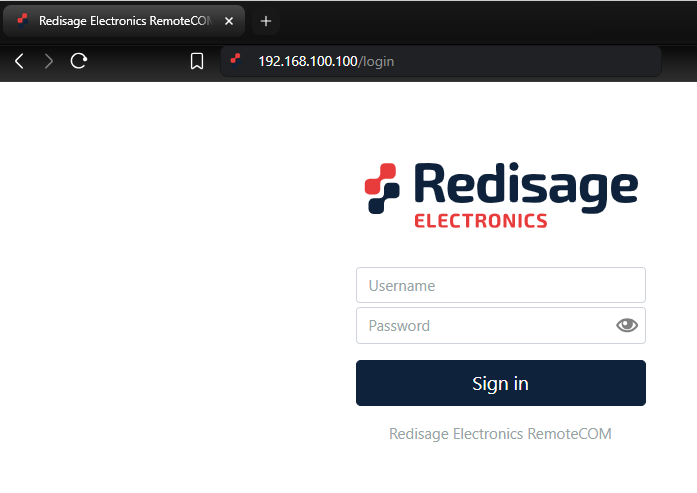 To access the web page open the browser, type IP address of the converter (default is 192.168.100.100). Then log in using user’s personal credentials. If it is a first configuration or the converter had a factory reset, then use default login details (login: admin, password: admin123).
