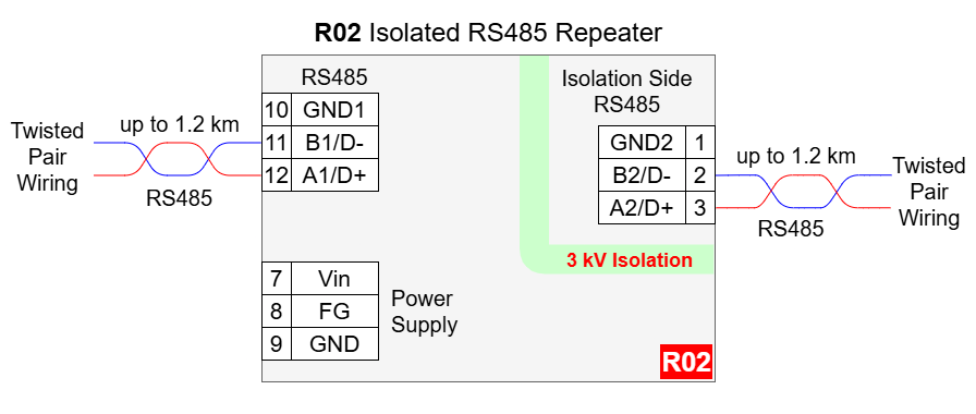 R02 - Isolated RS485 Repeater