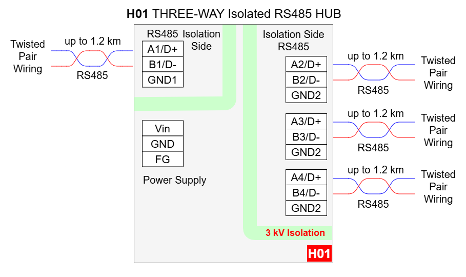 H01 - THREE-WAY Isolated RS485 HUB