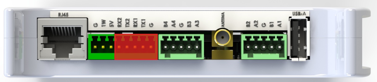 To display the console via UART an RS232 → USB adapter needs to be connected to the pins of the connector shown on the picture below.